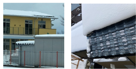 学校や保育園の屋根に電気ヒーター融雪を敷設することで、