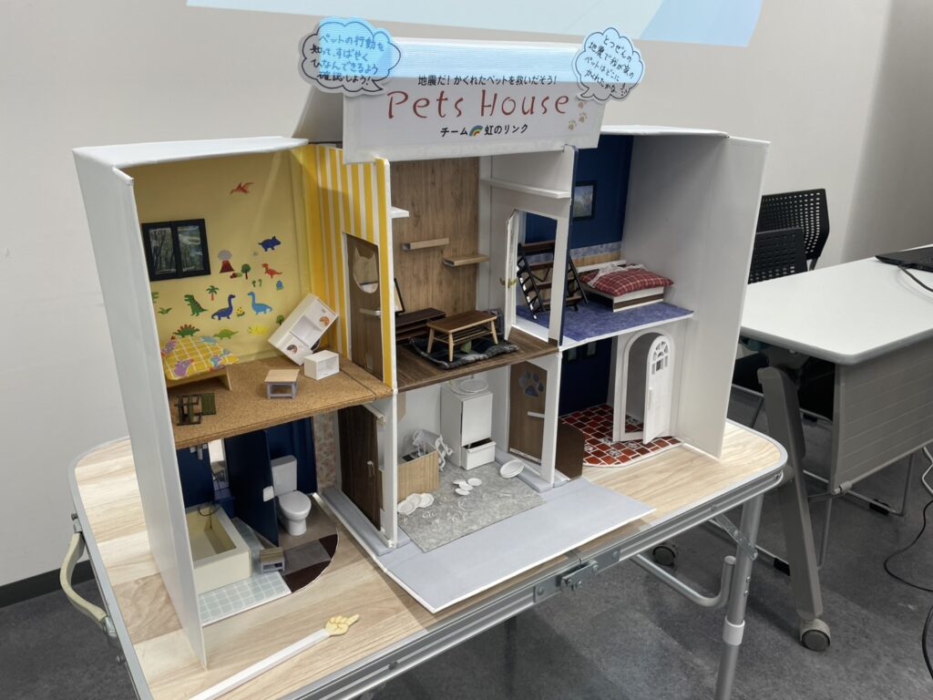 チーム虹のリンクさんが製作したドールハウスは、細部まで丁寧に手作りをされたそうです!地震発生時に家具や物が散乱した自宅内で、ねこちゃんがどんなところへ隠れてしまうのかを学ぶことができます。参加された皆さんからも「すごい!」「かわいい!」とのお声がたくさん上がっていました。