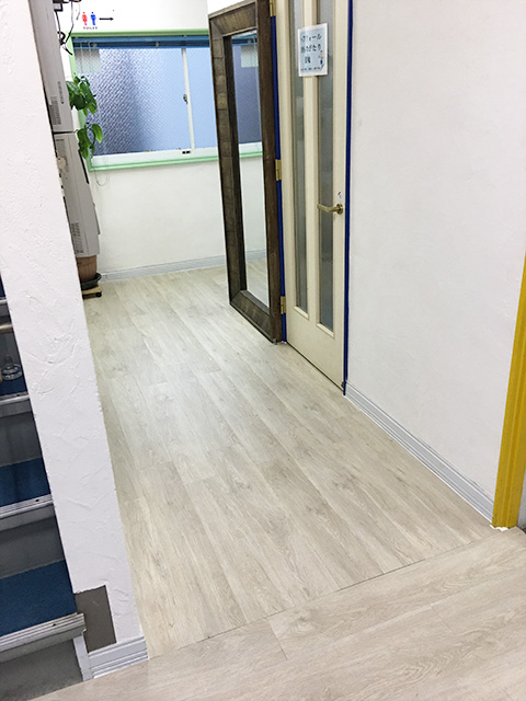 今回、事務所1階廊下の床を補修するにあたり色選びから張り替えまで頑張って仕上げてくれました。