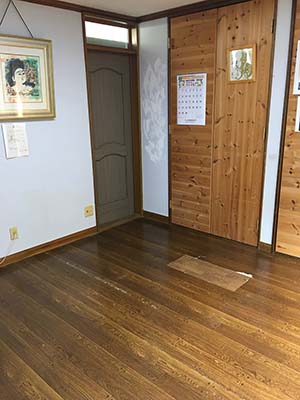 事務所1階廊下に続き、会長室の床の張替えも進みました。(事務所1階廊下はこちら)